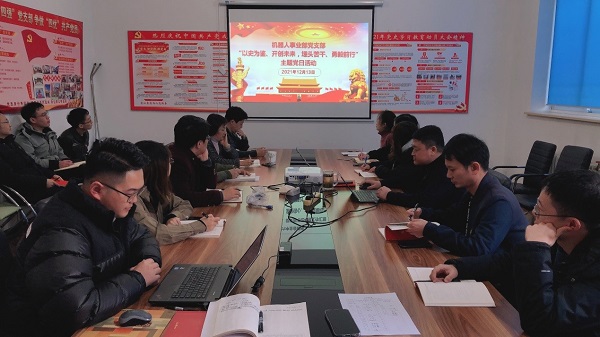 為深入學(xué)習(xí)貫徹黨的十九屆六中全會精神,自覺踐行初心使命,按照公司黨委部署要求,12月13日下午,機器人事業(yè)部黨支部聯(lián)合團(tuán)支部開展“以史為鑒、開創(chuàng)未來,埋頭苦干、勇毅前行”主題黨日,共計17人參加,會議由黨支部書記趙宏劍主持。
