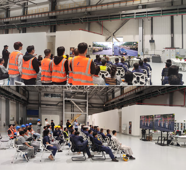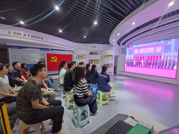 智能裝配事業部職工在項目現場收看大會直播