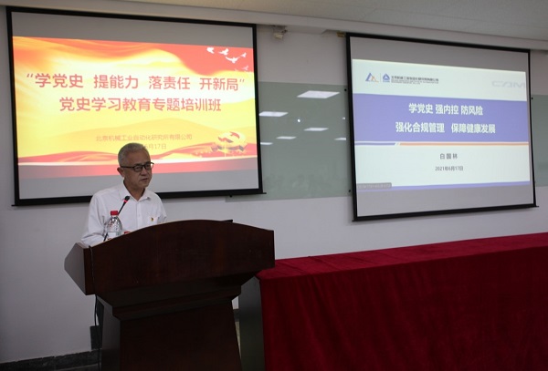 公司黨委副書記、總經(jīng)理李金村以《學(xué)黨史、強(qiáng)信念,推動(dòng)北自所高質(zhì)量發(fā)展》為題,講述了黨的百年發(fā)展歷程,并從目標(biāo)定位、重點(diǎn)任務(wù)和思維觀念等方面,提出了推動(dòng)公司高質(zhì)量發(fā)展的工作思路。
