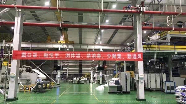 常州科技智能制造工廠建有兩條高端無紡布生產線,實現了全流程自動化、制造過程的信息化管控、智能倉儲和物流,可滿足智能化柔性制造。疫情當前,為滿足廣大人民群眾防疫需求,全力保障民用防護用品市場供應,常州科技加強工藝研究和技術創新,強化質量管控,調整工藝參數和產品結構,將全部產能用于生產民用防護用熔噴過濾層無紡布。該產品具有透氣、防水、無毒、無味、無菌、環保等優點,是制造口罩的主要原料,廣泛應用于衛生、保健等多個行業。目前,常州科技已進入“戰時”狀態,加班加點開展生產,每天可生產口罩必用紡粘材料十噸,可供制作口罩一千萬個。